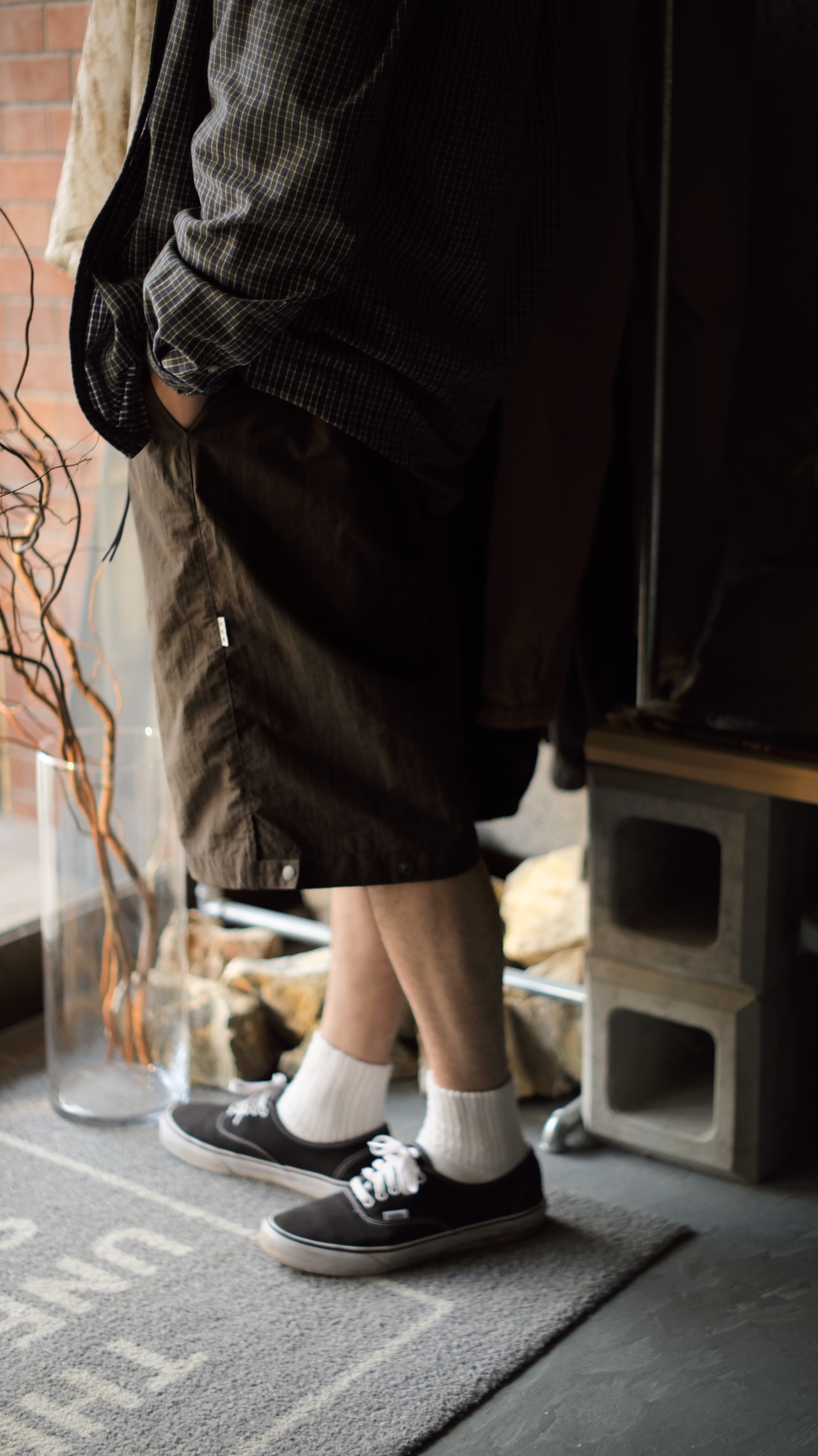 ハイクのショーツは膝上の短め丈が一般的ですが、クラッシックなキュロットタイプやニッカボッカタイプ、ストリートのルーズワークショーツなどをデザインソースに開発しました。