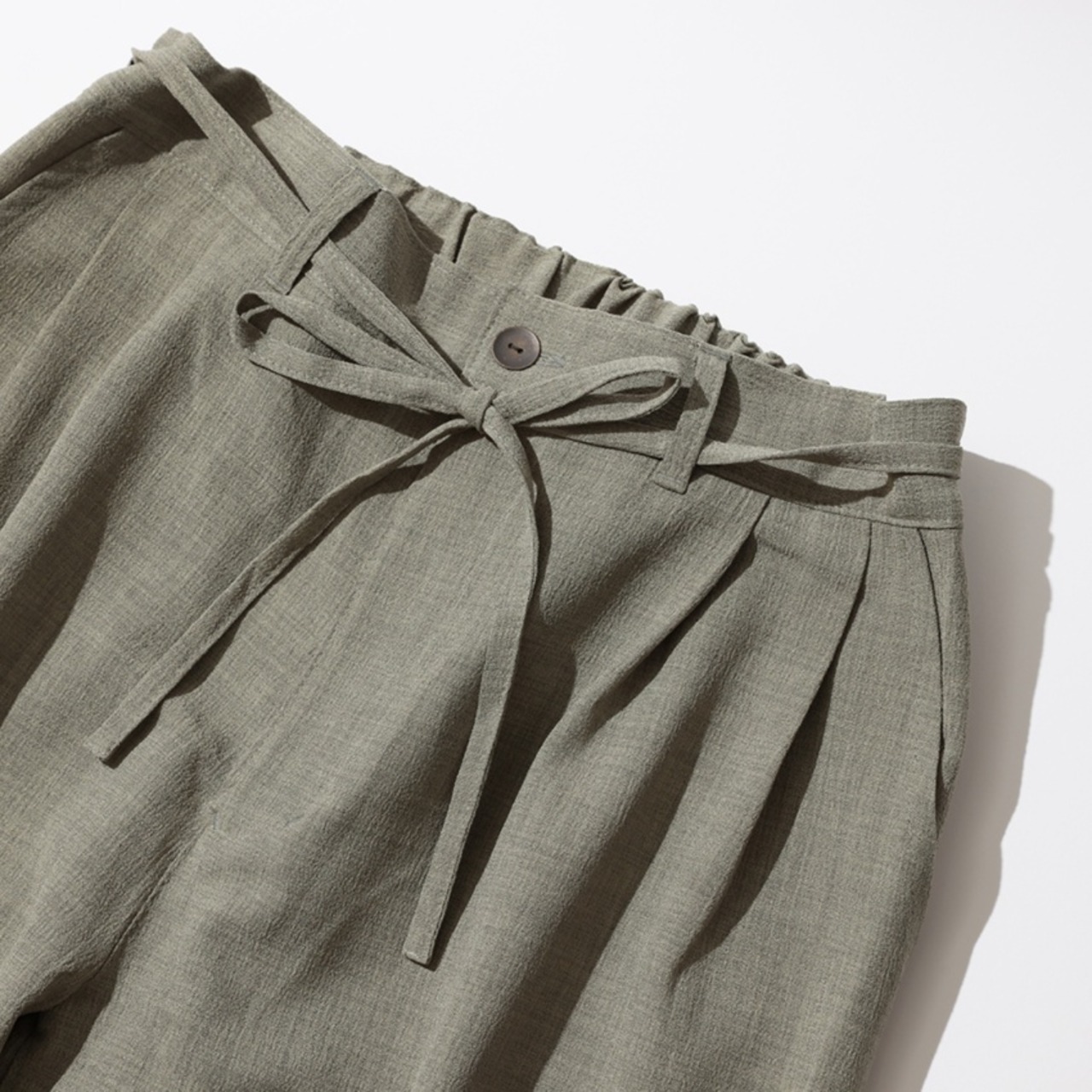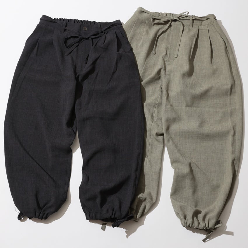 和の心。日本の伝統的な作業着「作務衣」をインスパイアしたワイドパンツ。