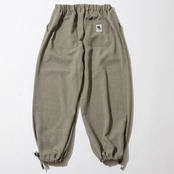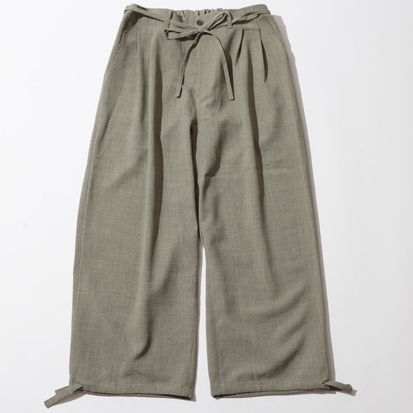 ゆったりとしたワイドシルエットでウエストはゴムと紐のリラックス仕様。