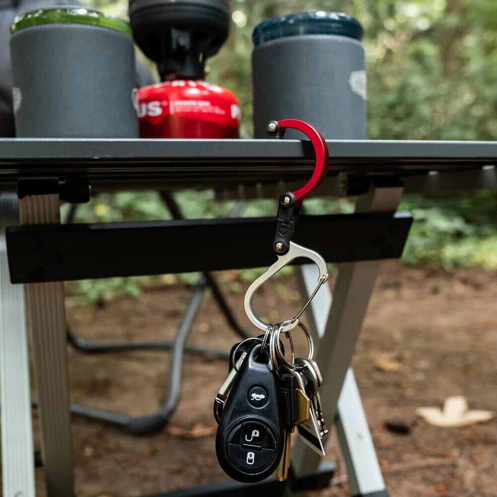 フックを開けばジョイント部が360度回転し、S字フックや回転フックに早変わり。材質は航空機にも使われる等質のアルミニウム合金製で、優れた耐久性を持ちます。