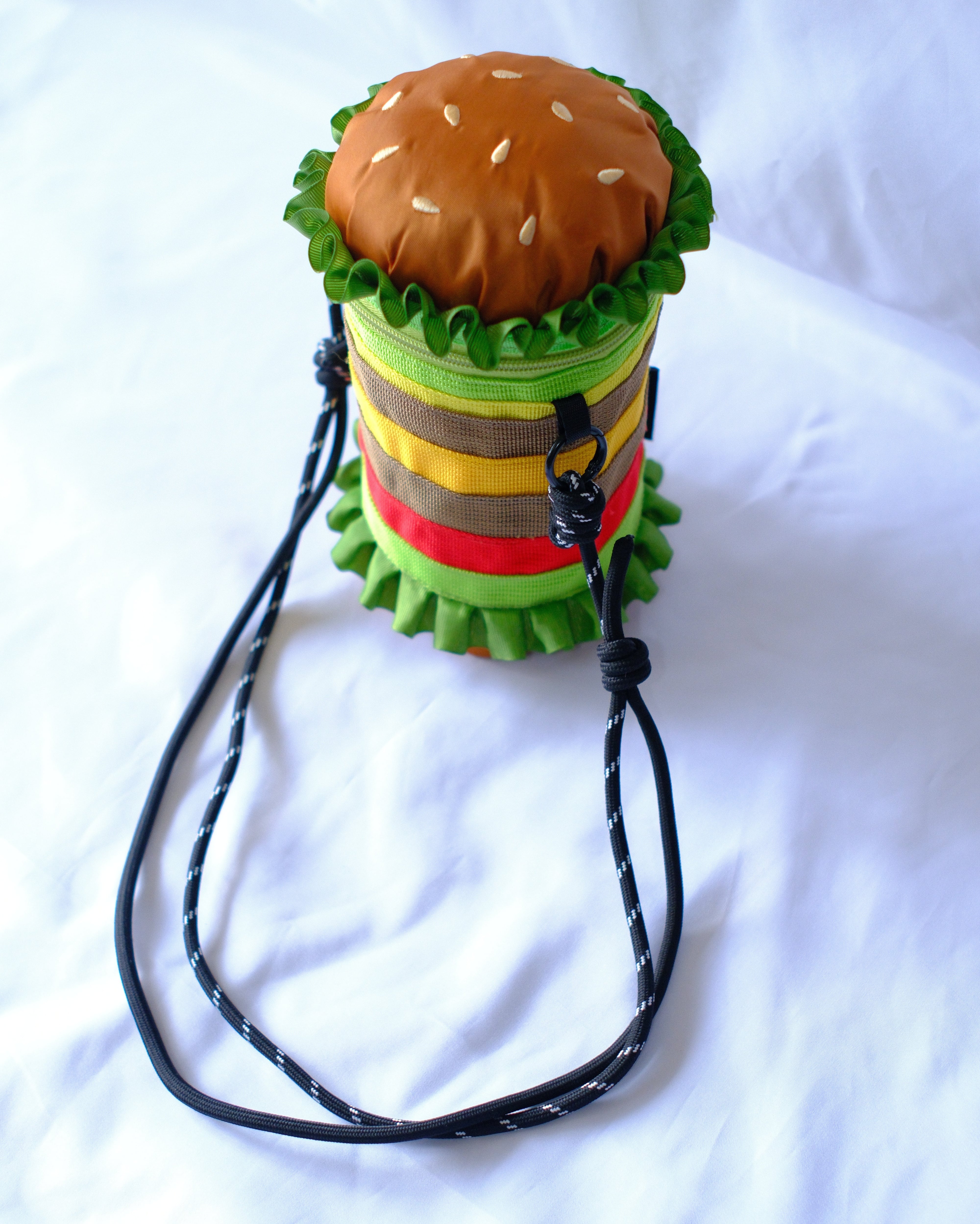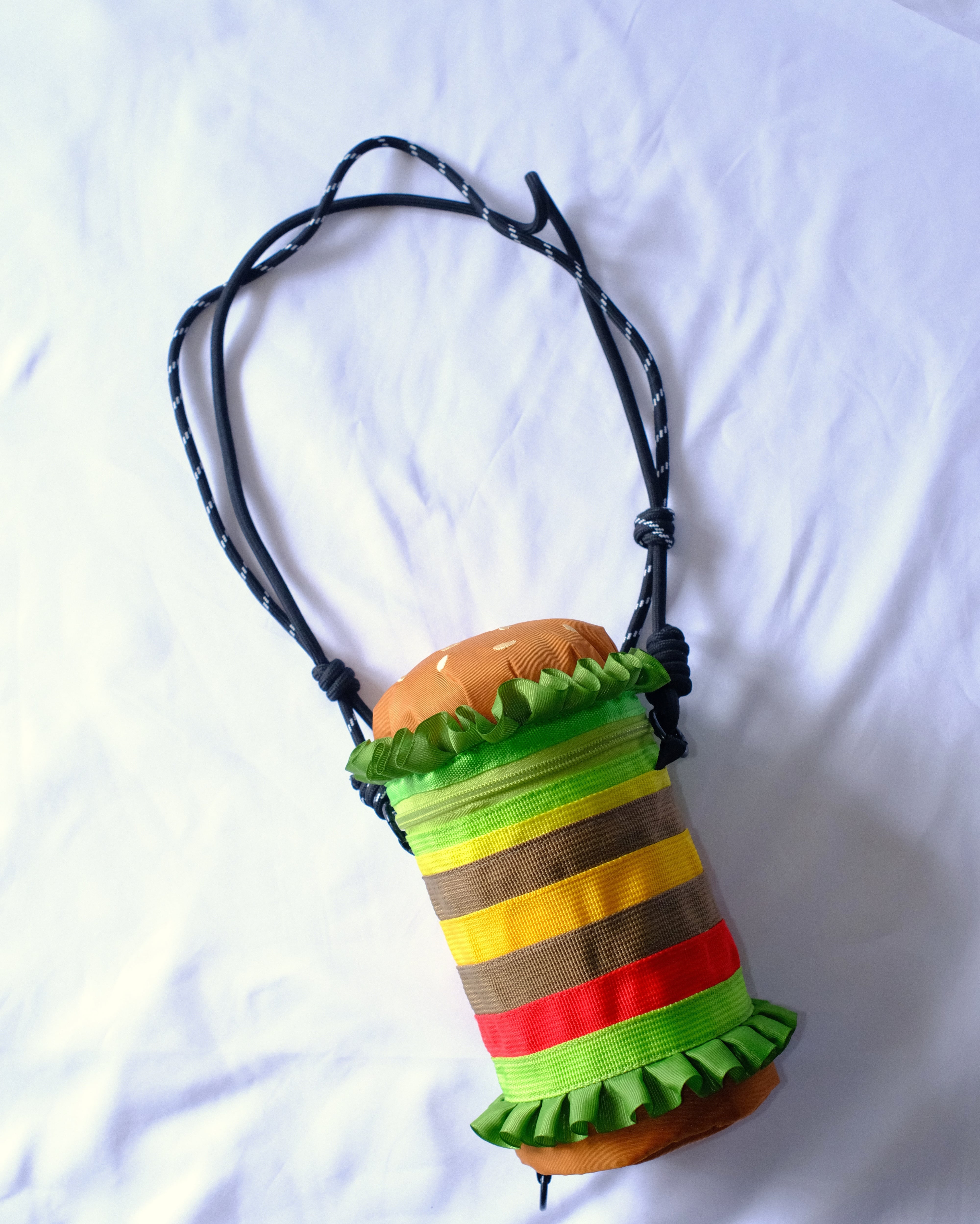 ウェットティッシュケースとして、ショルダーバッグとして、2度おいしいバーガーがリリースです。