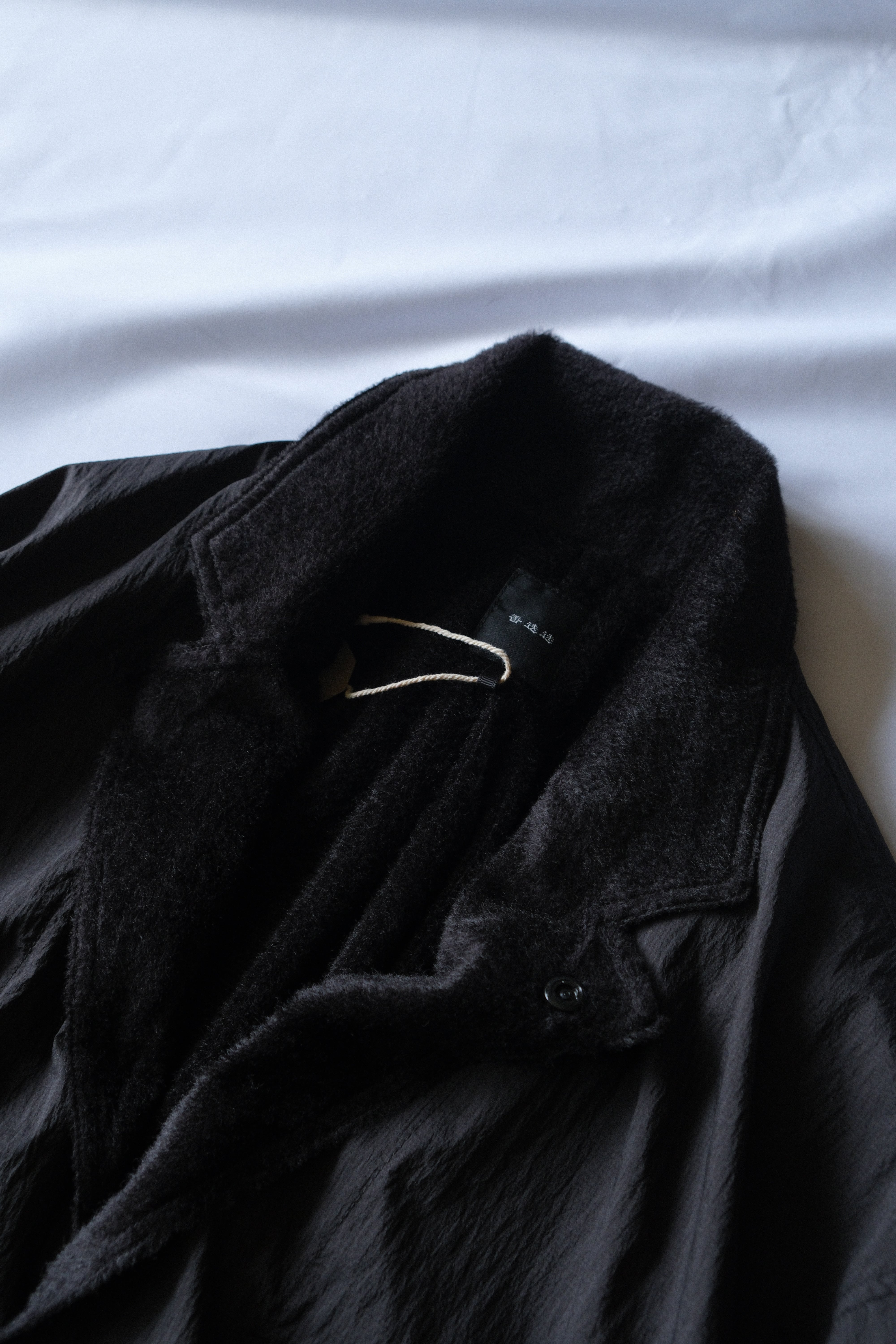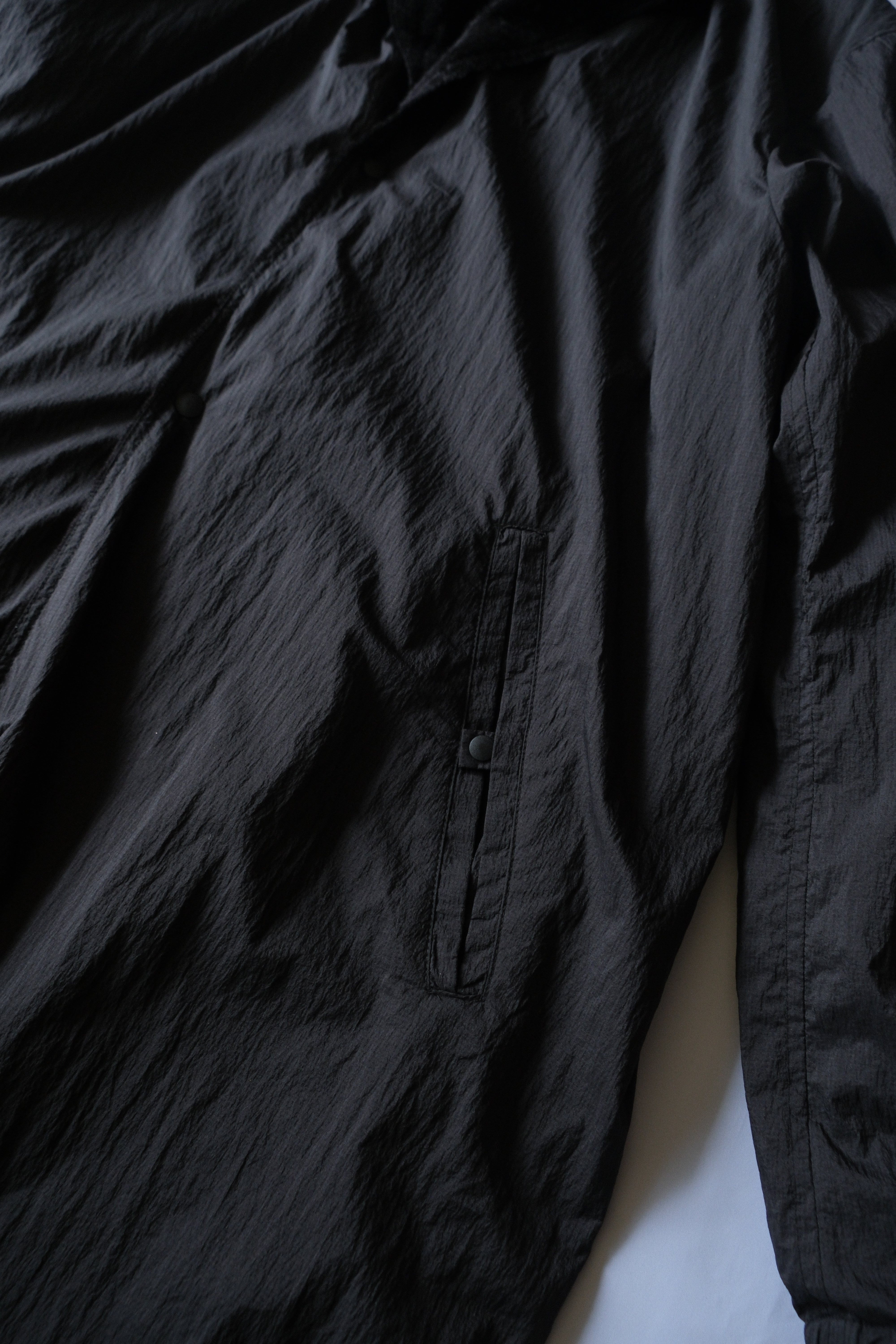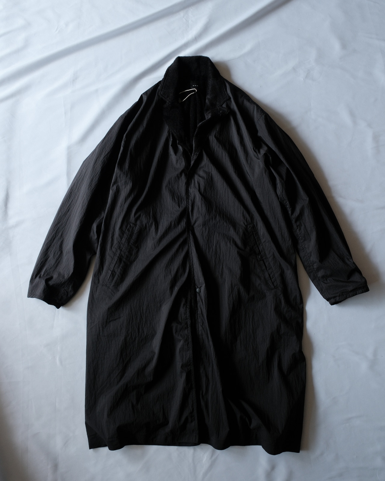 表地は極薄リップストップナイロンを防風処理、内側全面にOCTAを使った、非常に軽量なのに暖かいロングコート。