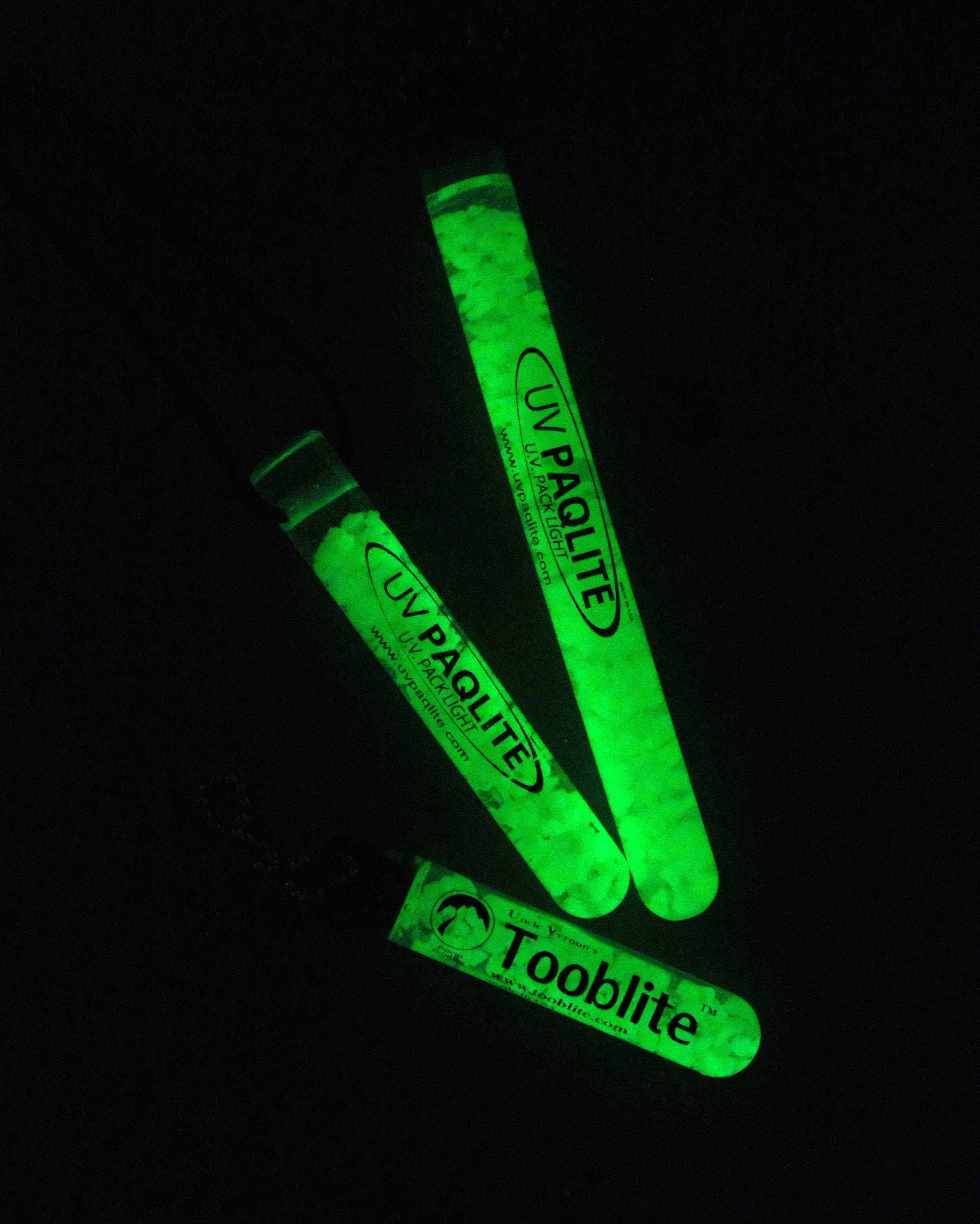 何度でも繰り返し使えるグロースティック。日中光にあてておくと最大で12時間光り続け、またお手持ちの懐中電灯やスマホのライトをかざすことで光を強めることもできます。