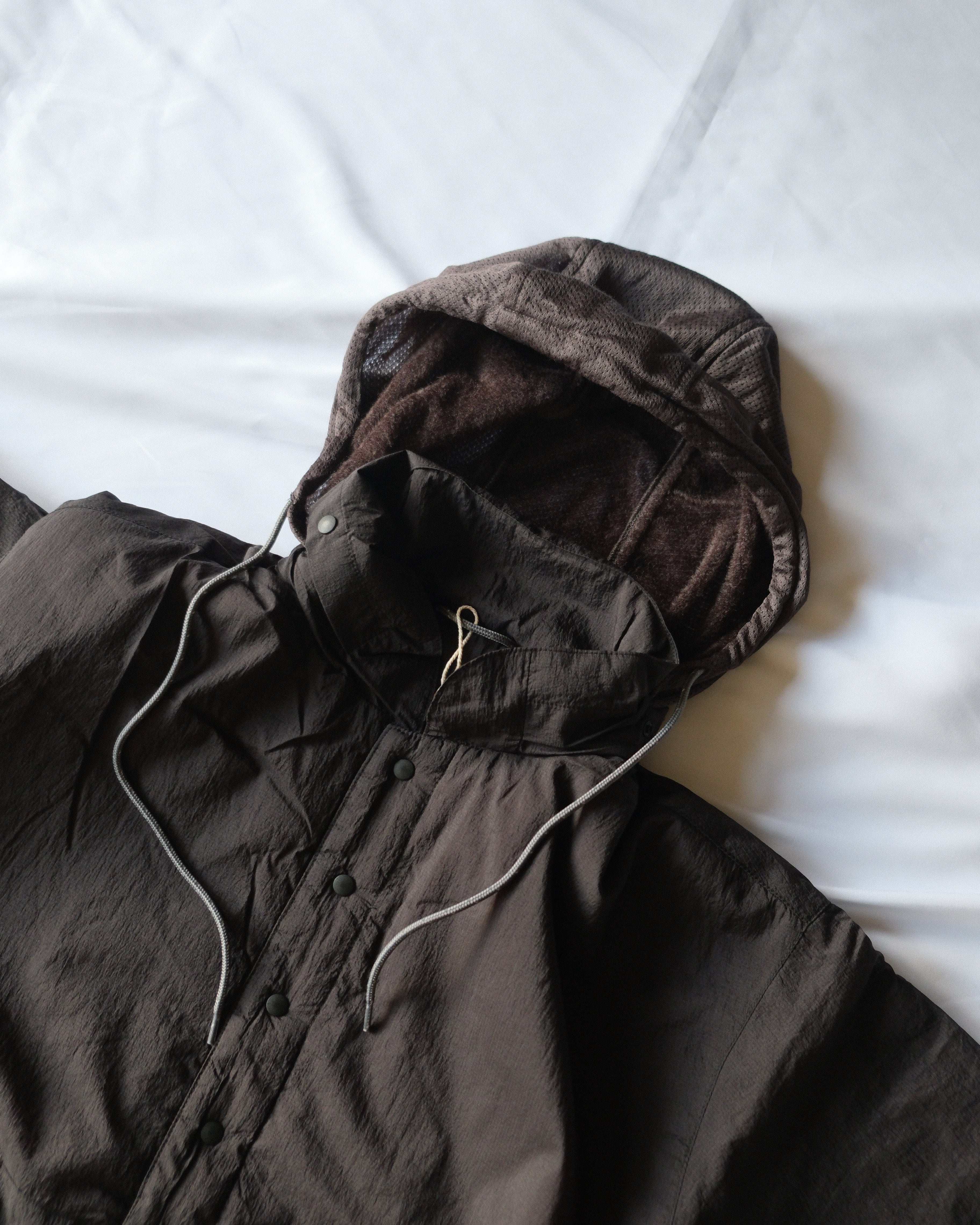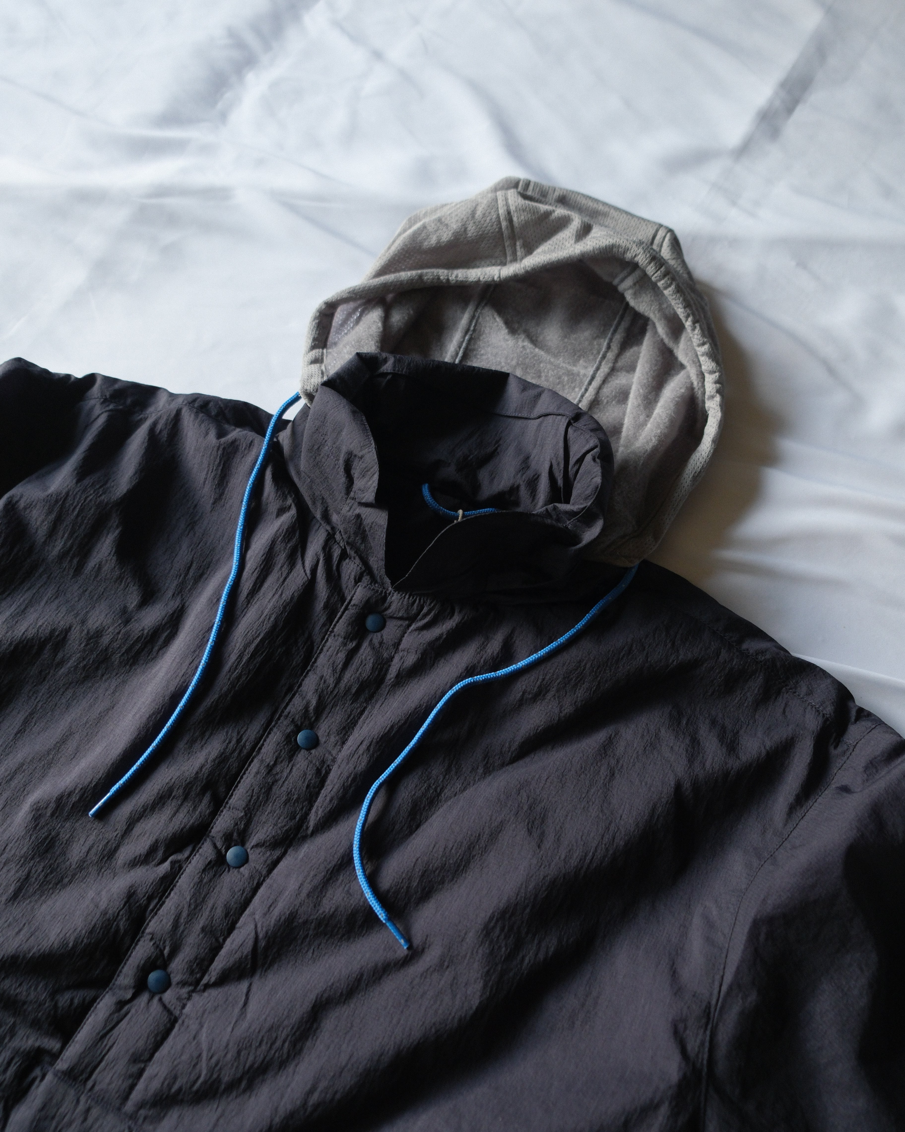 襟にはフードを収納できるクラシカルなデザインを採用し、フード部分には帝人フロンティアの高機能素材「OCTA®」を使用。