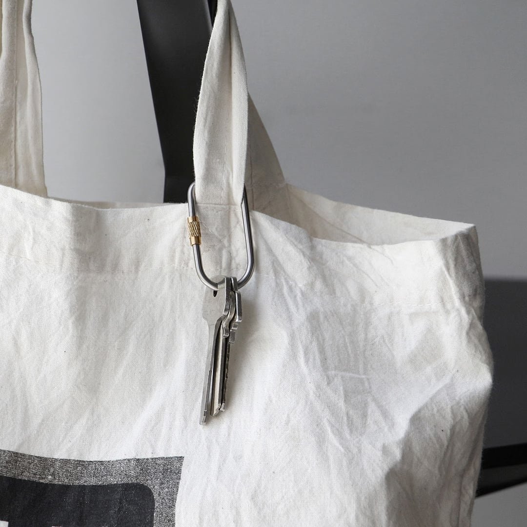 軽量でありながら非常に高い強度を持つ グレード5チタンをフレームに採用し、真鍮製スクリューを組み合わせたシンプルなカラビナ。