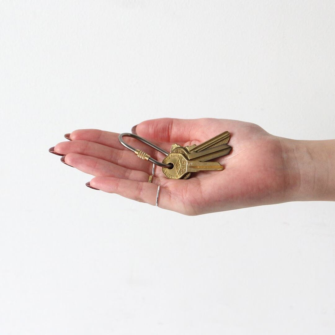 軽量でありながら非常に高い強度を持つ グレード5チタンをフレームに採用し、真鍮製スクリューを組み合わせたシンプルなカラビナ。