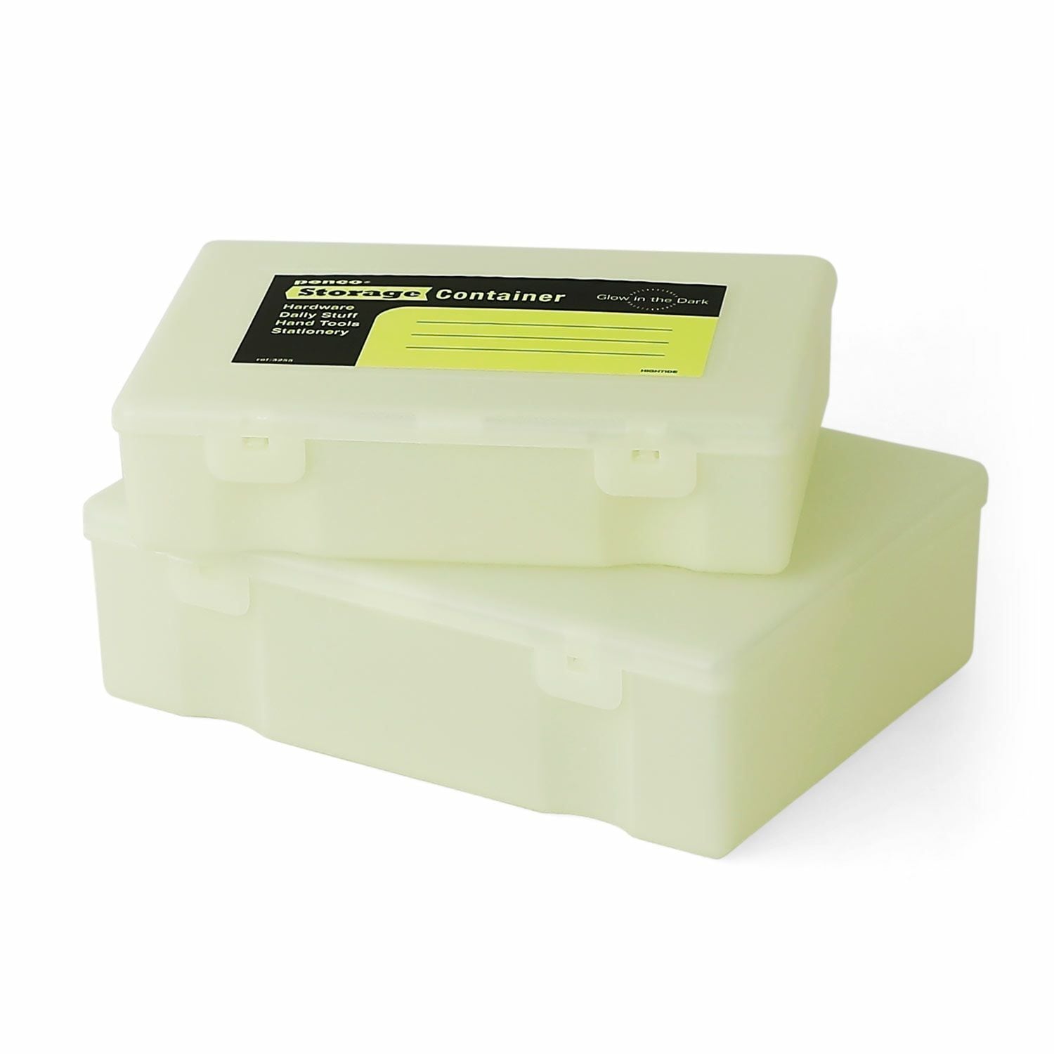 暗闇で光るグロー(蓄光)タイプはその特性を活かして釣りのルアーケースとして使ったり、明かりが少ないガレージやアウトドアシーンでも活躍します。もちろん家の中でも机上収納、おもちゃ収納、薬箱、工具入れなど用途を選ばずお使いいただけます。