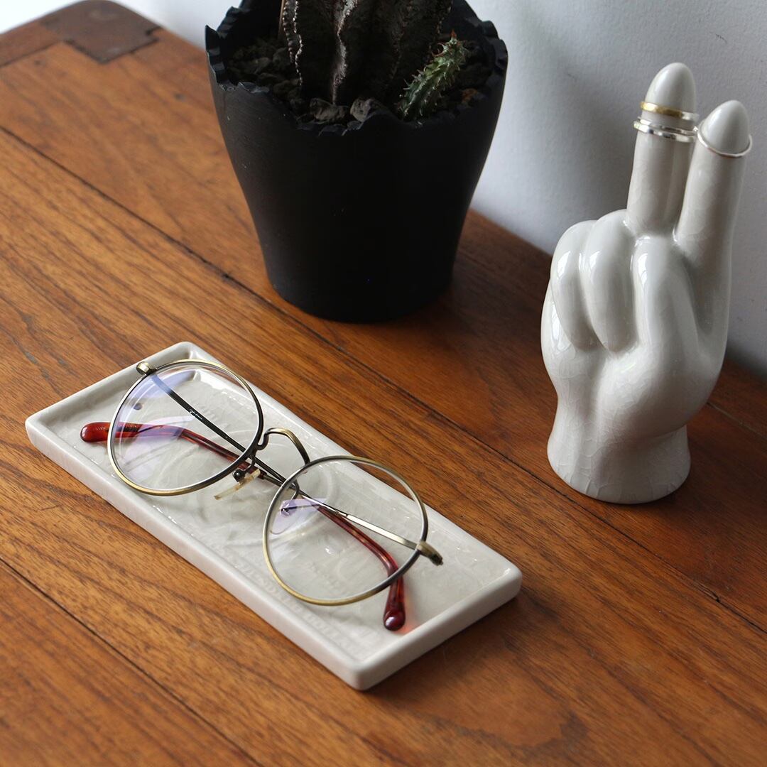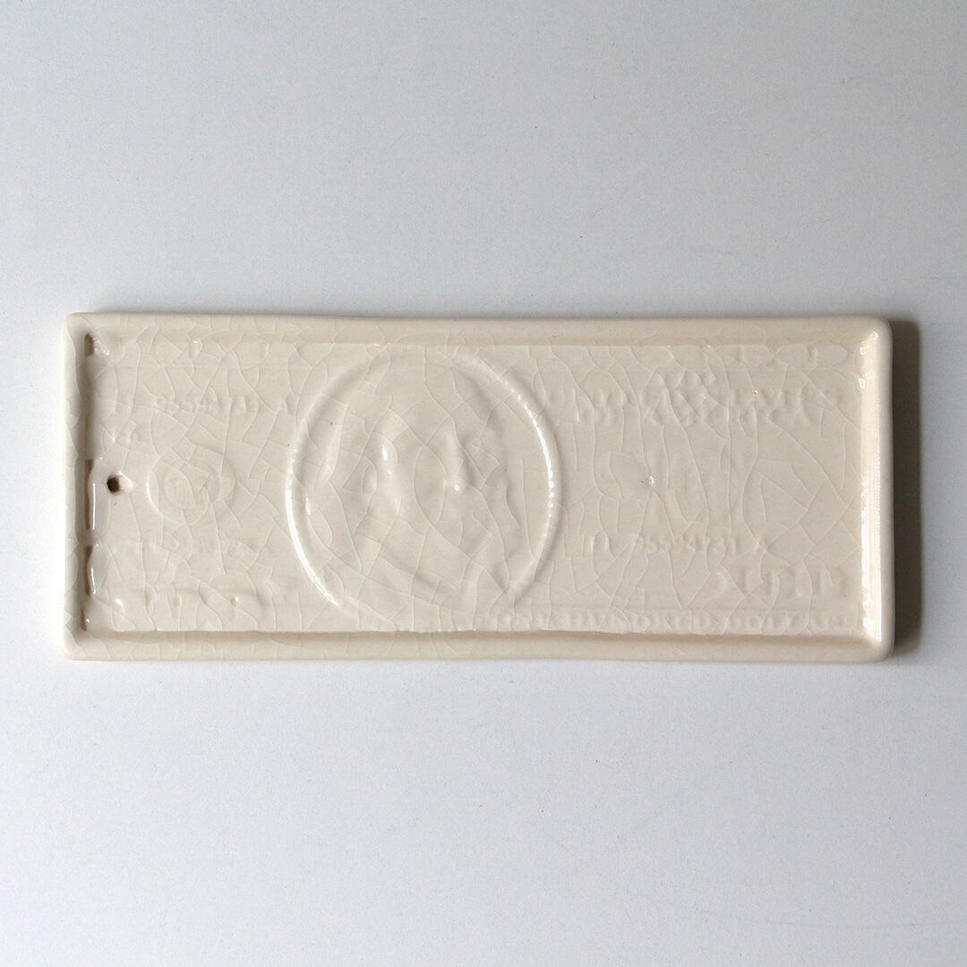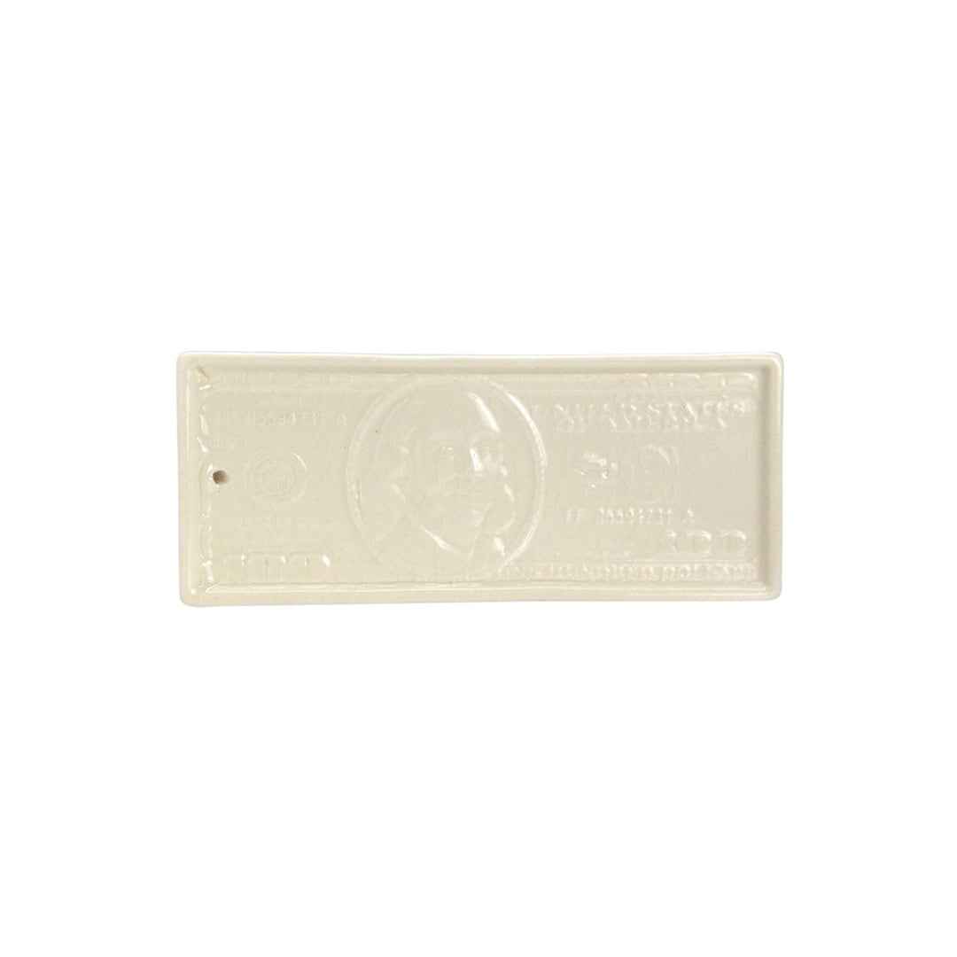 100ドル札をモチーフにしたトレイは、グラフィカルでありながら陶器ならではの温もりを感じさせるデザイン。