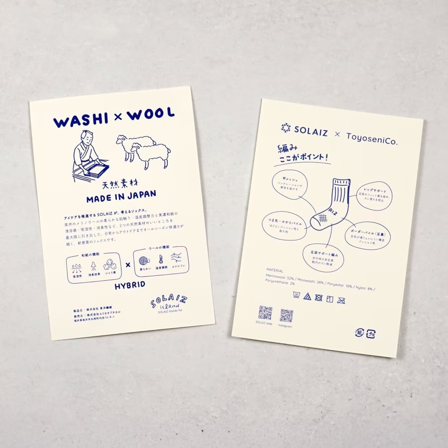 尾州のメリノウールと美濃和紙、2つの天然素材を掛け合わせた新感覚ソックス。