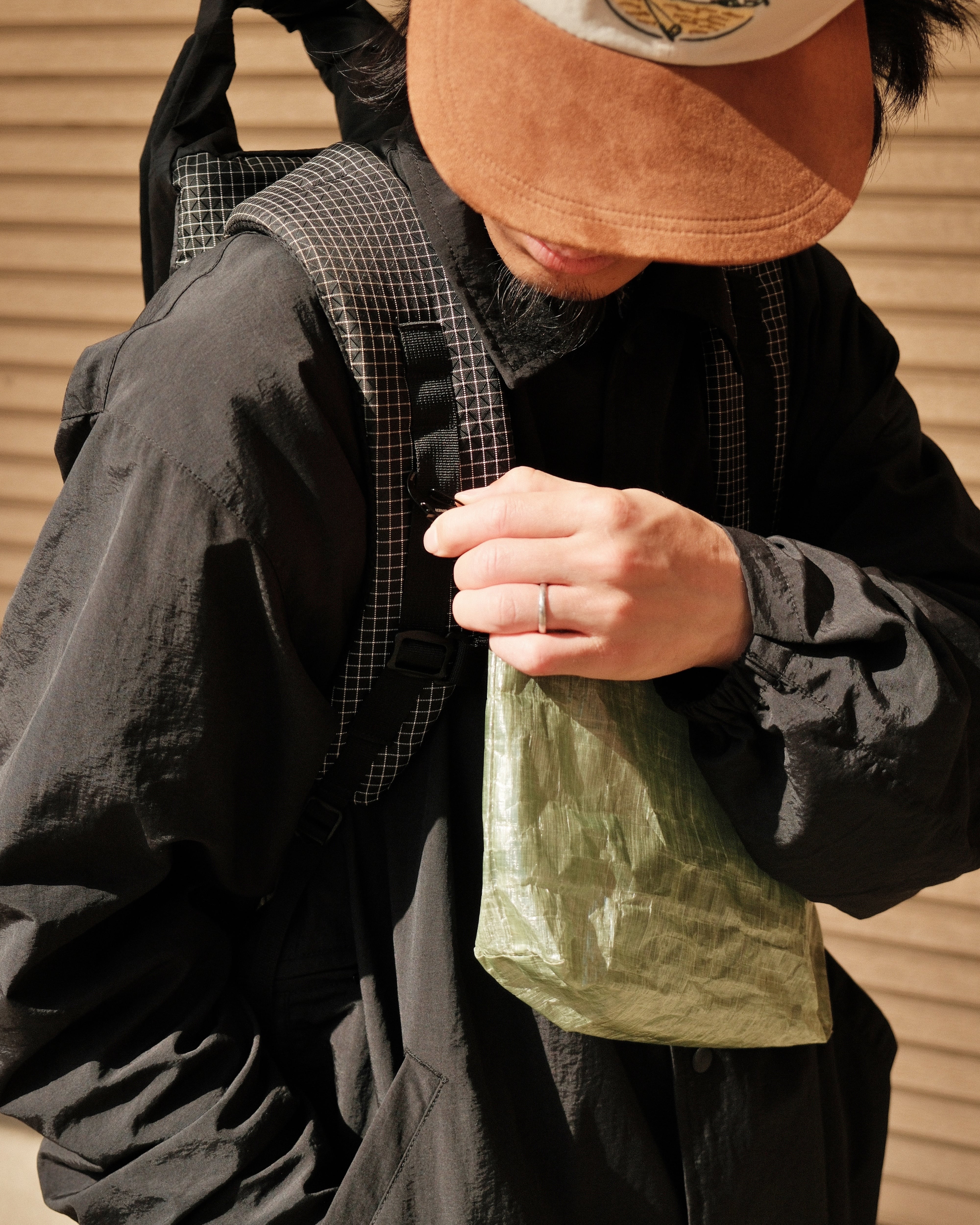 釣行はもちろん、カラビナでバックパックにドッキングすればハイクのサブバッグとしても。もちろん街使いにも最高です。