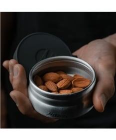 耐久性のあるアルミニウム製で中身を安全かつ乾燥した状態に保ちます。シリコン製の蓋のタブを上に引っ張るだけで簡単に開ける事が出来ます。
